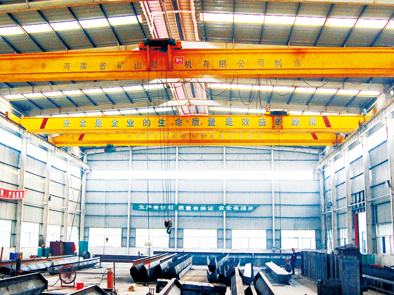 本產(chǎn)品由箱形主梁、端梁、小車及運行機構組成,電動葫蘆安裝在角型小車上作為起升機構,角型小車采用偏掛形式布置在主梁一側(cè)運行,小車設有上、下水平輪,與垂直行走輪呈三點布置。電動葫蘆位置由傳統(tǒng)的主梁下提升到主梁上側(cè),有效提高了起升高度。